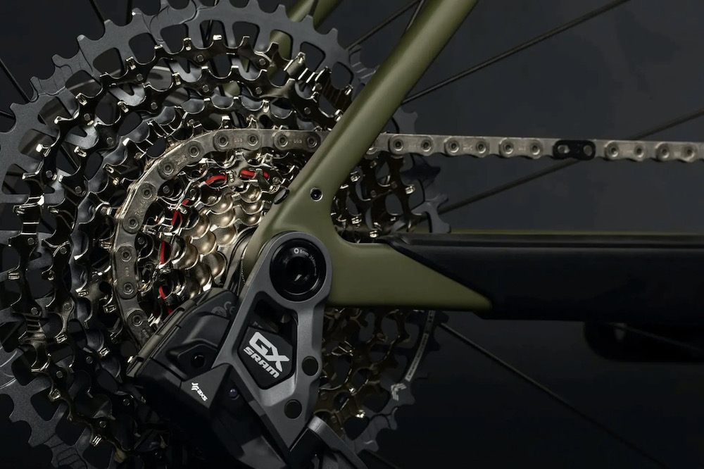 Se corrigió la suspensión de la horquilla delantera para la horquilla delantera de grava de 40 mm. Santa Cruz redujo el ángulo del tubo de dirección en medio grado (69 grados) y alargó la horquilla inferior trasera, aumentando así la distancia entre ejes de la carrocería.