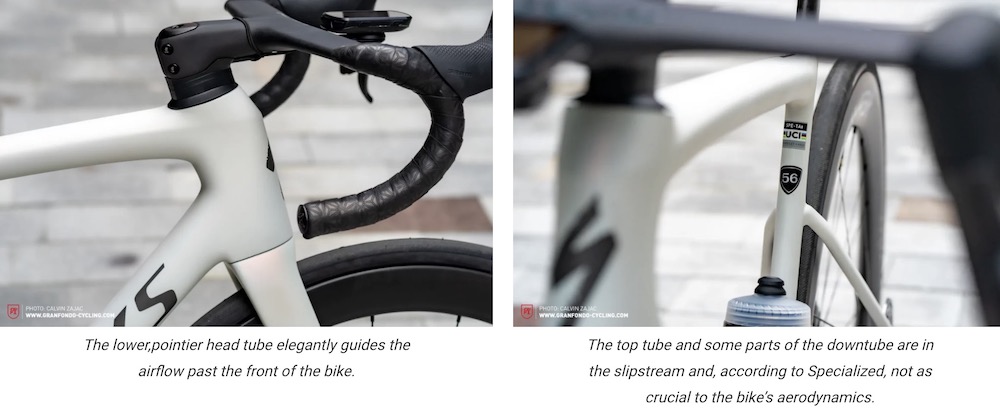 Mientras estaban en eso, también mejoraron la aerodinámica en tres áreas. El cambio más significativo y notable es el tubo de dirección. Como se ve en las bicicletas Venge y aerodinámicas de 3T y Cannondale, el tubo de dirección se extiende más hacia adelante. Esto asegura una forma más puntiaguda y al mismo tiempo permite una transición más limpia del tubo superior al tubo inferior.