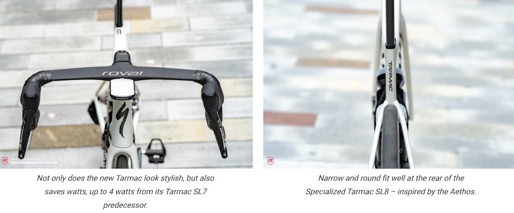 El segundo gran cambio es la cabina de una sola pieza. Justo antes del lanzamiento, Specialized presentó la nueva cabina Roval Rapide, que también es compatible con la antigua Tarmac SL7 que se basa en una combinación convencional de potencia y manillar. El nuevo diseño de la cabina ahorra hasta 4 vatios en comparación con su predecesor, pero actualmente solo está disponible con los modelos S-Works. Aunque esta innovación es impresionante en términos de ahorro de energía, las cabinas aerodinámicas de una pieza no son nada nuevo en las bicicletas de carretera y existen desde hace varios años.