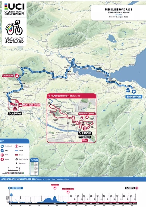 La UCI publicó el calendario completo, los mapas y los perfiles del primer Campeonato Mundial unificado de la UCI que tendrá lugar en Glasgow, Escocia, del 3 al 13 de agosto, con ligeras revisiones de las distancias anunciadas en septiembre pasado.